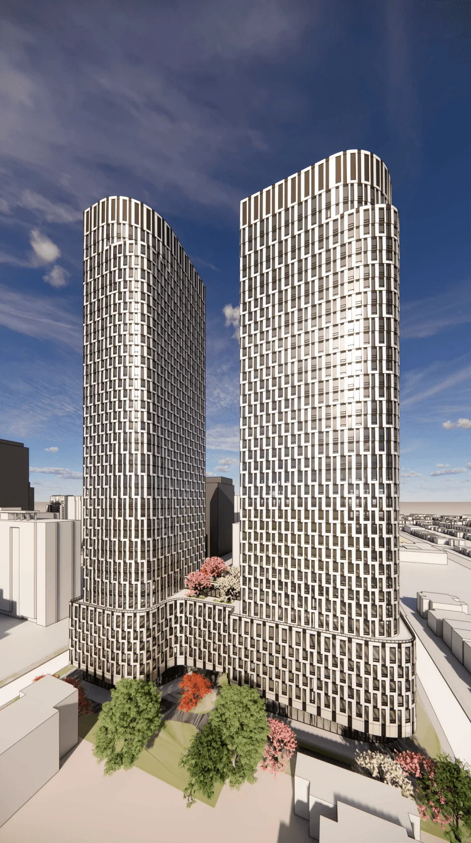 A snazzy new two-tower, high-rise development is headed for the High Park North neighbourhood of Toronto that could deliver over 870 new rental units within walking distance of Keele Station. The proposal was submitted by Elysium Investments in early-September and comprises an Official Plan and Zoning By-law Amendment application for a 41- and 39-storey building with a shared six-storey podium.